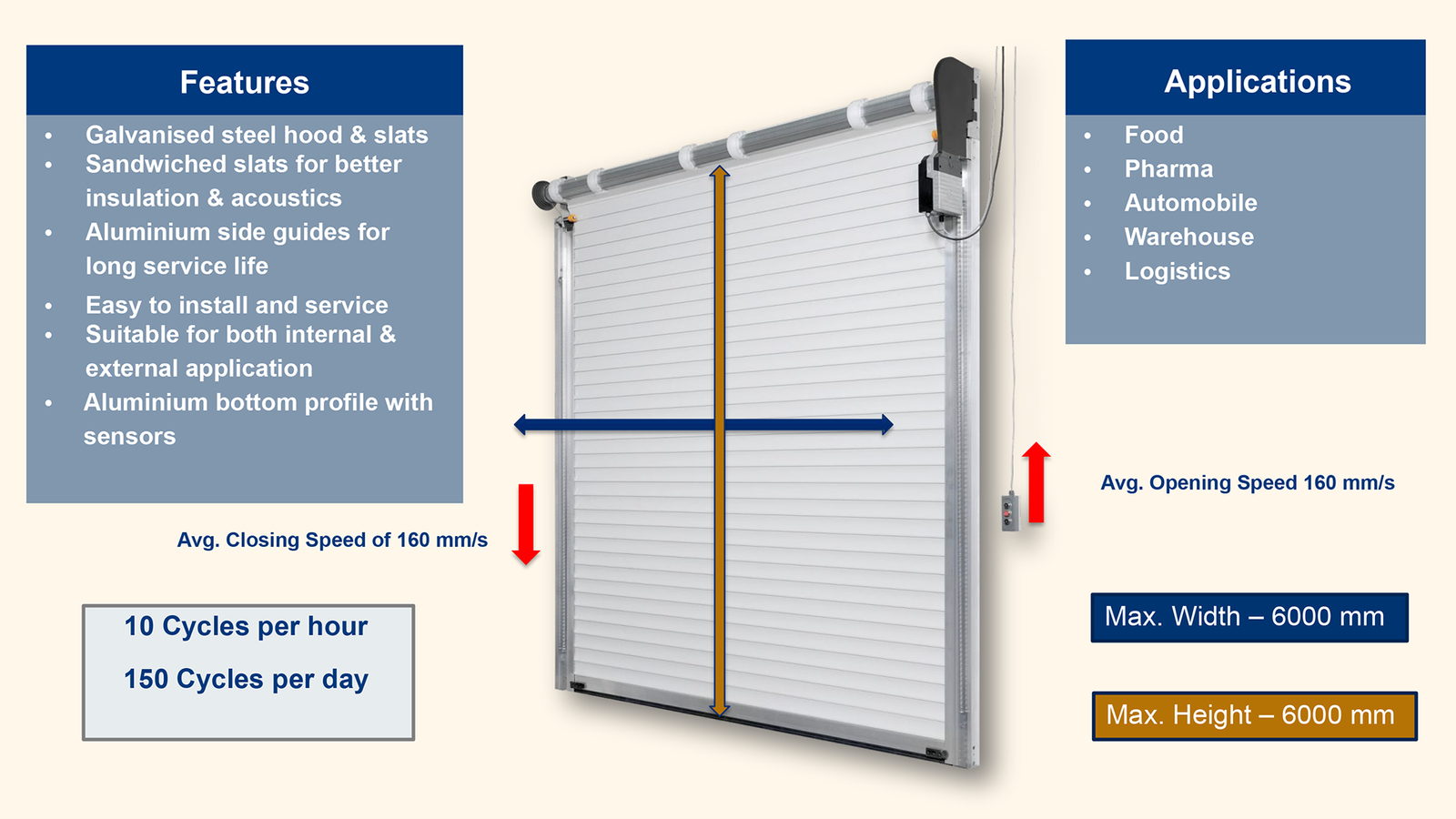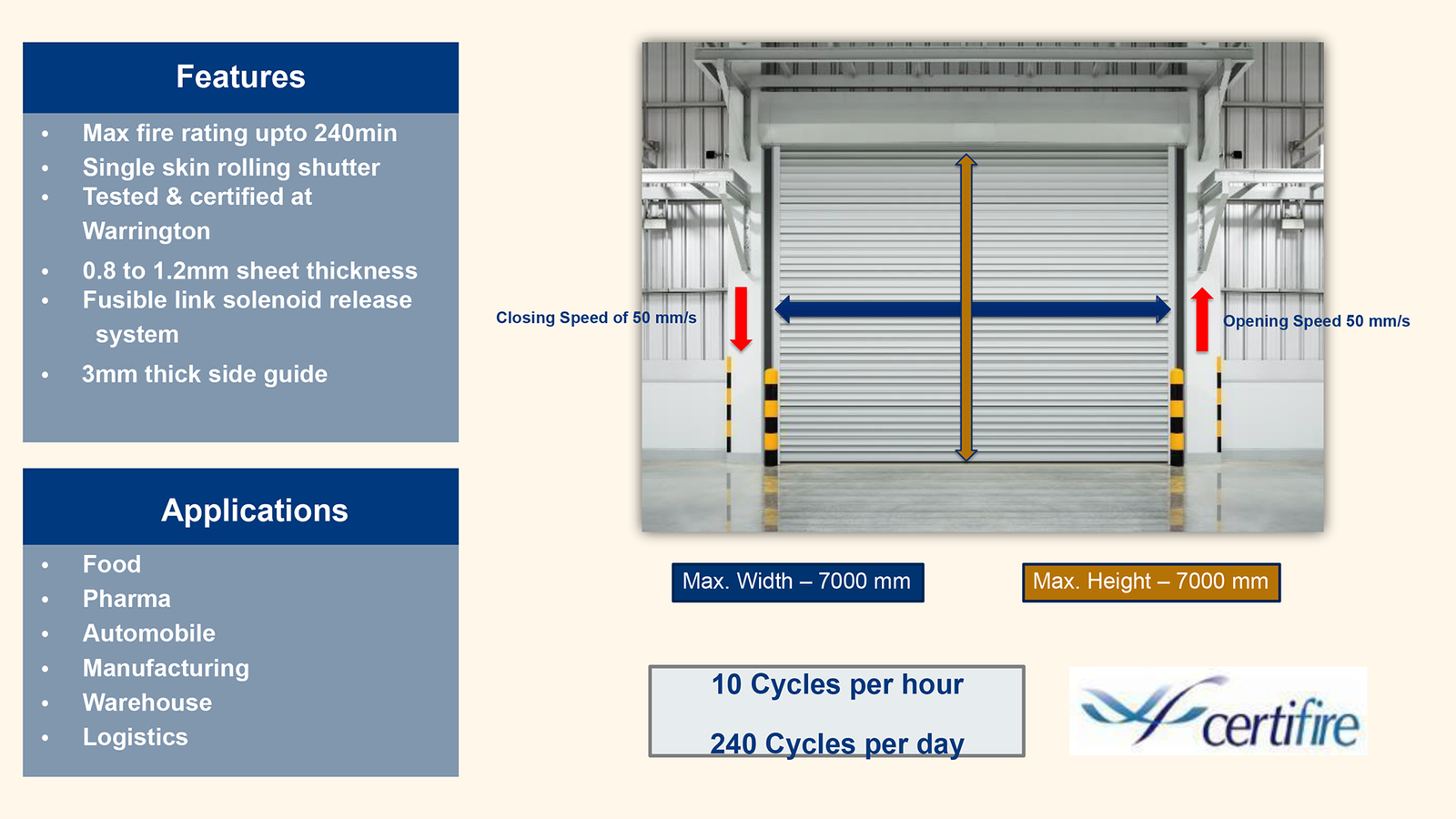 Hormann fire rated rolling shutter comes with highest standard of safety features. When it comes to large openings, our fire rated rolling shutters are ideal solution for compartment in case of any fire exigency. Whether it be large industrial installation, production facility, electrical installation in a high rise, or storage facility, these doors provide a comprehensive protection against spread of fire.